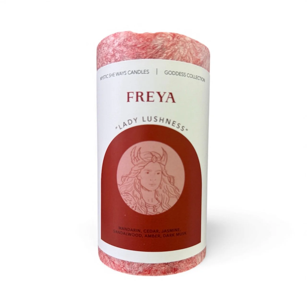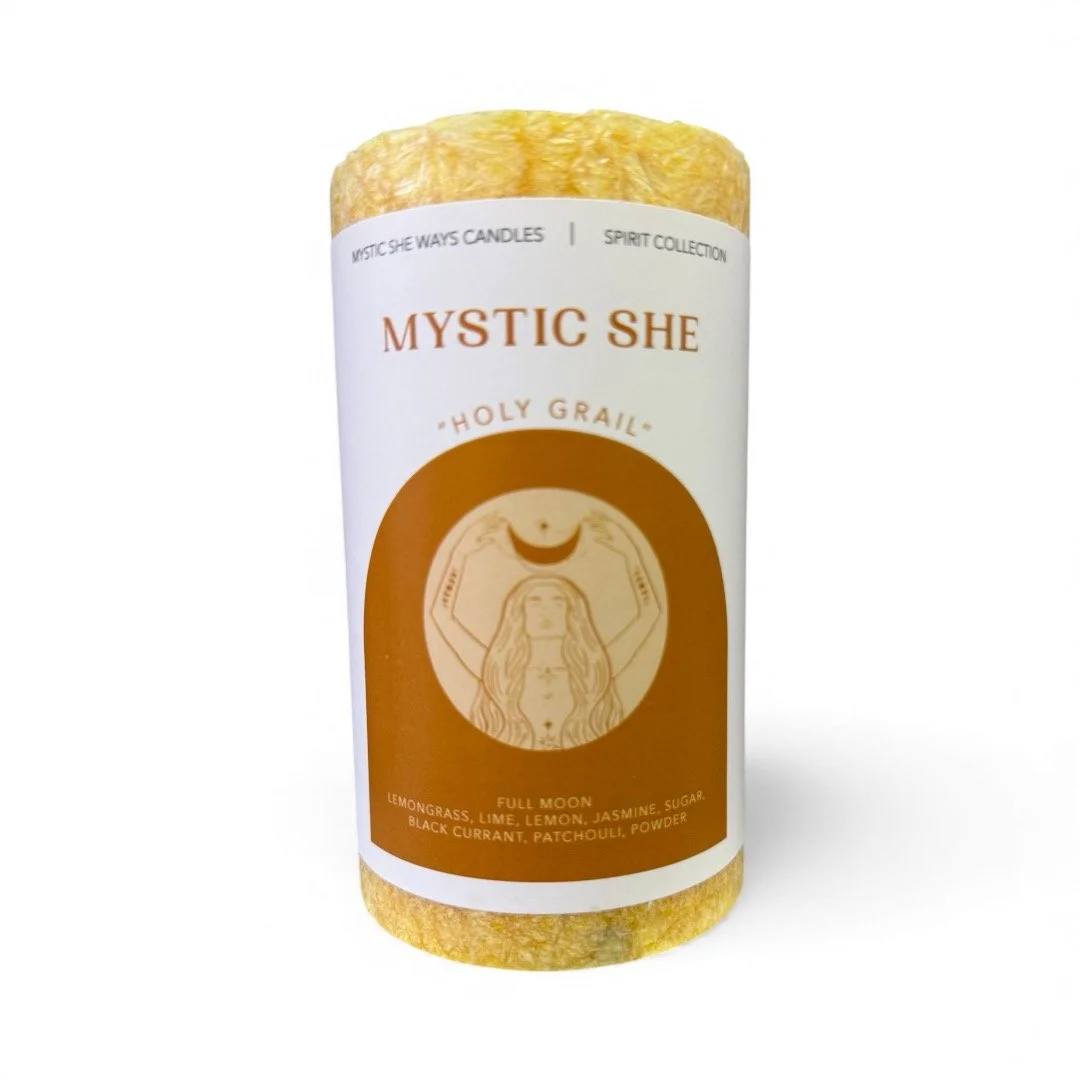The Mystic She Goddess Collection candles are hand crafted with magic. Each individual goddess has been called for invocation under specific moon phases. They contain herbs or scents to bolster their power. Enjoy!